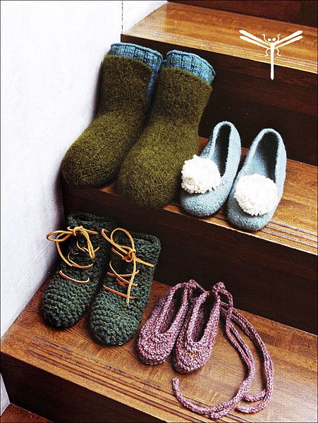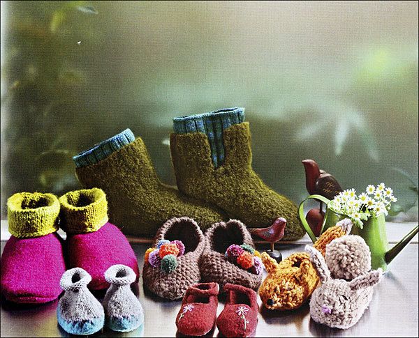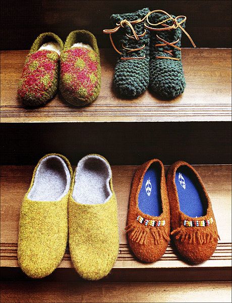 Knitted slippers and house shoes: These are the new frontier for the legions of knitters passionate about sock knitting. And The Knitted Slipper Book is an everything-you-need-to-know guide to making this exciting variation on the sock. Whatever your preference—moccasins, mukluks, clogs, ballet flats, boots, booties, or Mary Janes—you’ll find all of the instruction you need. This eclectic collection of 30 designs is meant to satisfy the slipper styles of everyone in the family, young and old, male and female. In addition to the knitting instructions, techniques covered include felting; shaping; sizing; attaching soles, linings, and insoles; and finishing with tassels, pom-poms, and other trims. Step-by-step photos assure beautiful, hard-wearing, and well-fitting results.