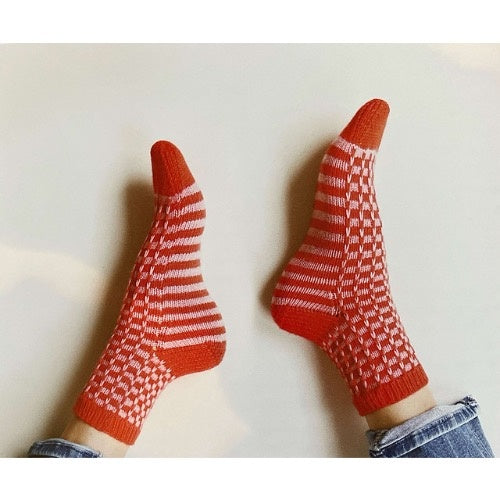 Build your skills month-by-month with 12 levels of sock knitting. First, start with the humble but mighty Basic Sock, then try more complicated patterns for lace socks, cabled socks, socks with Estonian Inlay, and socks done in stranded knitting.
