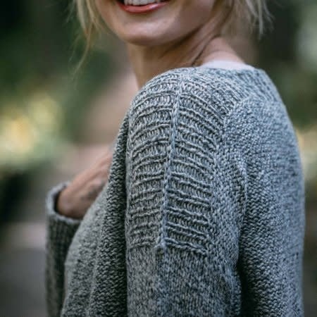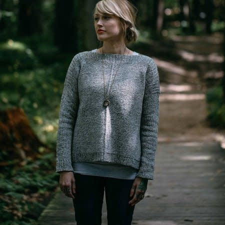 The Designer, Andrea Mowry combined her favorite attributes - texture, faux seams, drop shoulder, and some positive ease to create this versatile, flattering sweater! No matter your body type, it is perfect for wearing to the office or out on your weekend hike in the woods. I’ve already knit a second version, leaving off the sleeves so I can wear it in warmer weather or layered over a long sleeve tee!