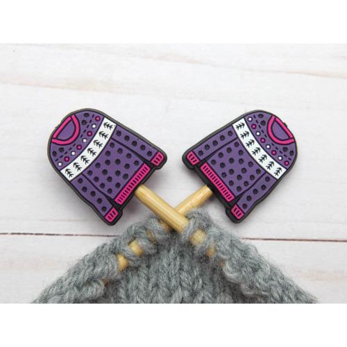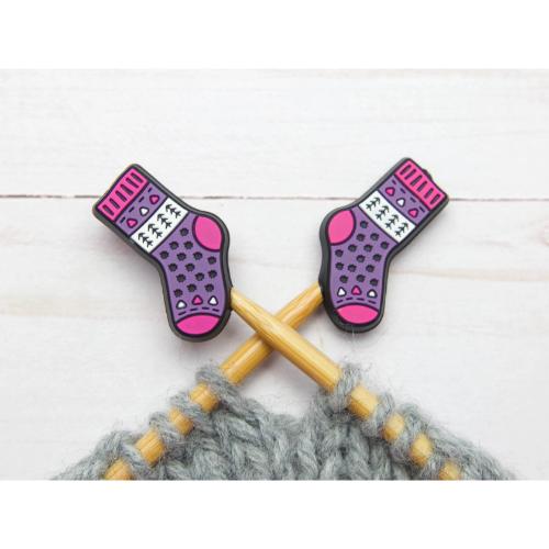 Fits knitting needle sizes US 3 (3.25mm) up to US 13 (9mm). This listing is for a set of 2 stitch stoppers.