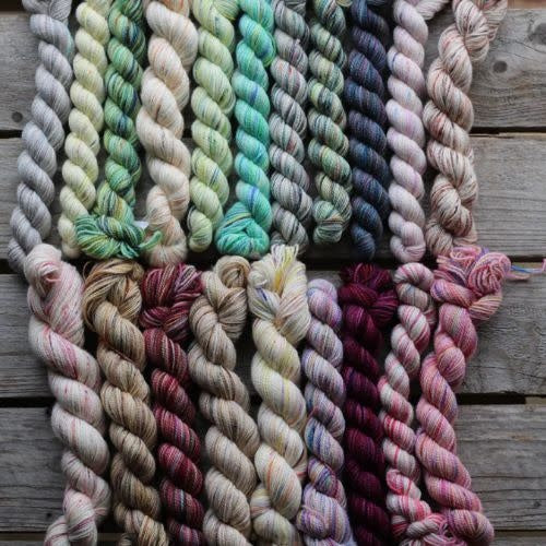 The shawl can be made using any number of colours in DK and Fingering, the pattern itself calls for 24 skeins for the DK version and the Fingering takes 21. This means that their previous advent packs can be used ass well.