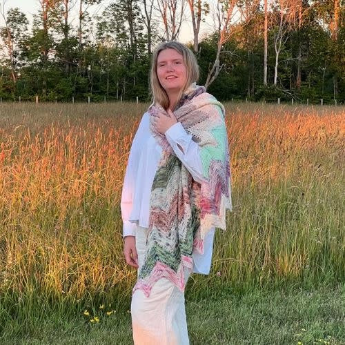 Easily adjust the length of your wrap by working more (purchase extra skeins) or fewer color repeat sections.