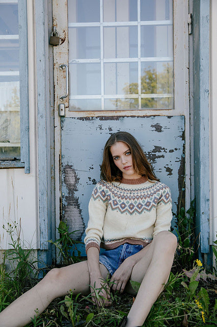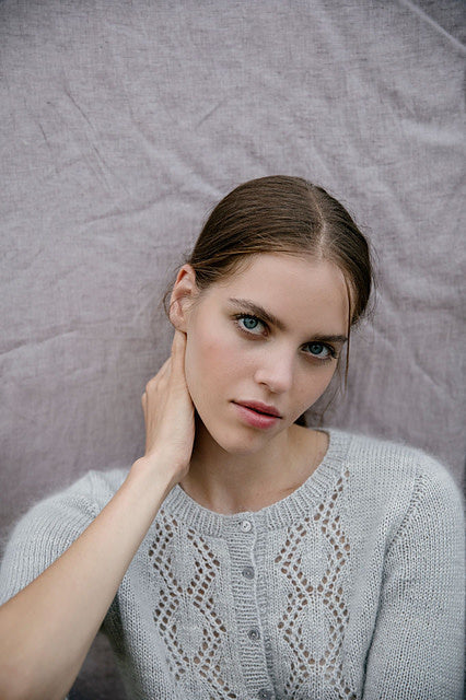 - 12 knitting patterns: 6 sweaters, 2 cardigans, 2 shawls, 1 hat, and 1 pair of socks