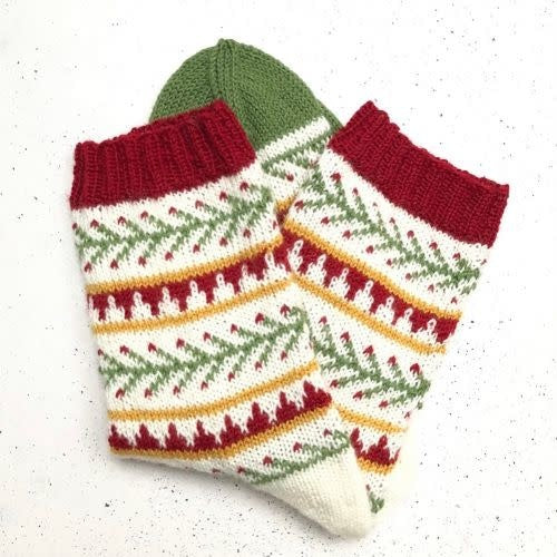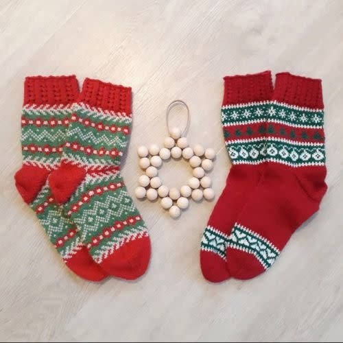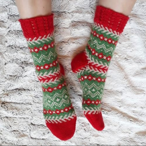 Two patterns that you can choose from are any of the four ChristmasSoxx by Kerstin Balke OR Jaana's Christmas socks by Jaana Talvitie. Jaana's pattern includes some tips on how to adjust the size, a step-by-step, pictured how-to-guide to knitting a sole gusset, gusset under the foot! The gusset guide also includes instructions how to design your own gusset pattern using her gusset charts.