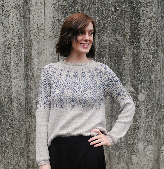 Orbits is the fourth design in my Einaudi Collection – a collection of knitwear patterns inspired by pieces of music written by Ludovico Einaudi. Orbits features stranded colourwork through the majority of the yoke and into the upper body and sleeves, with patterns that capture the mysterious, repetitive yet delicate essence of the music.