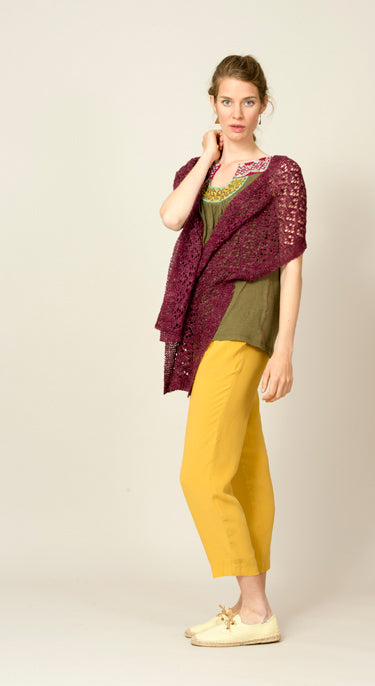 YARN: The Fibre Co. Meadow (40% merino wool, 25% baby llama, 20% silk, 15% linen; 549 yds/100 gm skein): pokeweed, 1 skein.