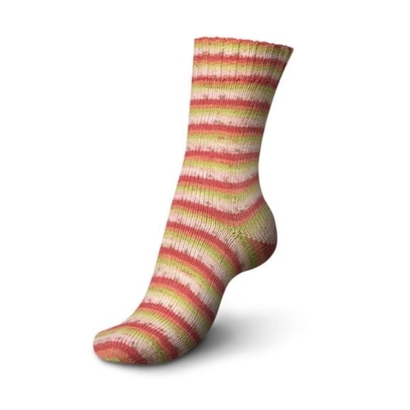 Sweet fruits for your feet - From orange to watermelon and dragon fruit, you'll definitely find something that matches your taste! REGIA Tutti Frutti Color not only looks tasty, it is also breathable and extra soft because of its high cotton content. A alternative colorful fruit basket. Four single plies are twisted together to create the ideal weight and durability for hand-knit socks. Like all REGIA yarns, it won’t felt and offers long-lasting wear and great shape retention. Machine washable up to 40° C (100° F) and can be machine dried.