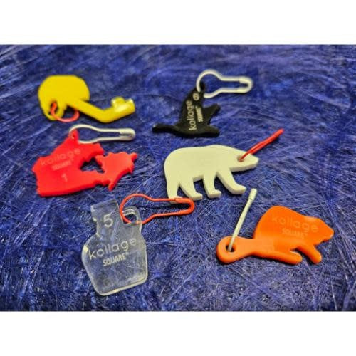 BONUS!! 6 stitch markers in Canadian icon shapes, and Maple leaf shaped needle gauge included! (Hockey, Beaver, Canada Goose, Polar Bear, Maple syrup bottle, Map of Canada)