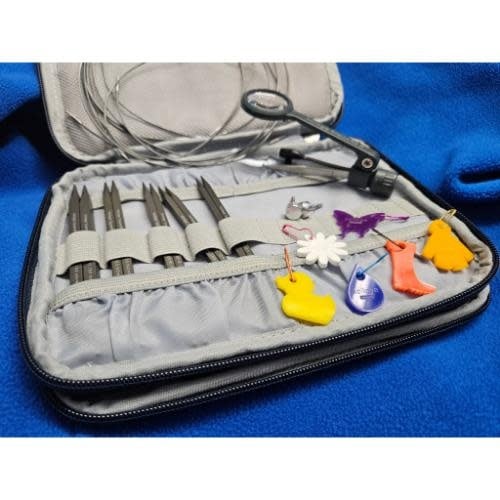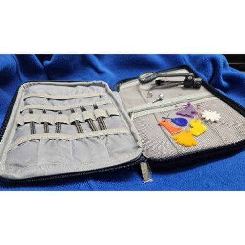 1 zippered " Polka Dots " pouch with zippered pockets for the cables and separator loops to hold tips.