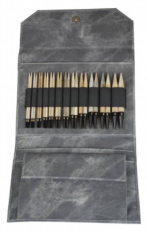 Packed in a beautiful, high quality waxed fold-up case with elastic that's perfectly matched to the size of each needle pair for a snug fit and a large pocket. The perfect knitter's gift!