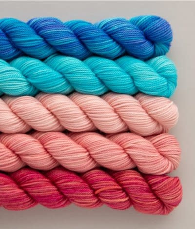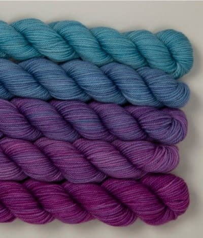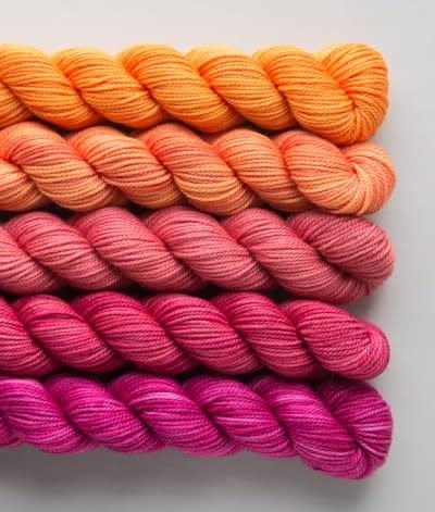 A perfect blend of warmth and strength to make a hardwearing sock yarn that can stand up to your affection and abuse. Tough Love Sock is our best-selling yarn and knits up beautifully into fine-gauge sweaters, small shawls, as well as socks! Spun from 80% superwash and super soft merino and 20% nylon, this 3-ply yarn is so versatile — knit it firmly for hard wearing socks, knit it loosely for drapey shawls, or knit it doubled for a great worsted weight substitute. Hand-dyed in Canada