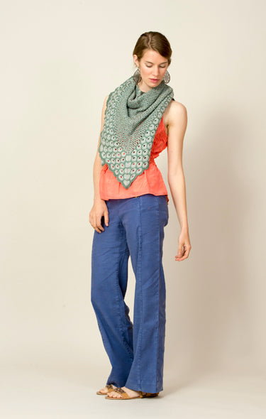 YARN: The Fibre Co. Meadow (40% extra fine merino, 25% baby llama, 20% mulberry silk, 15% linen; 549 yds/100g skein): cornflower (MC), fennel (CC), 1 skein each.