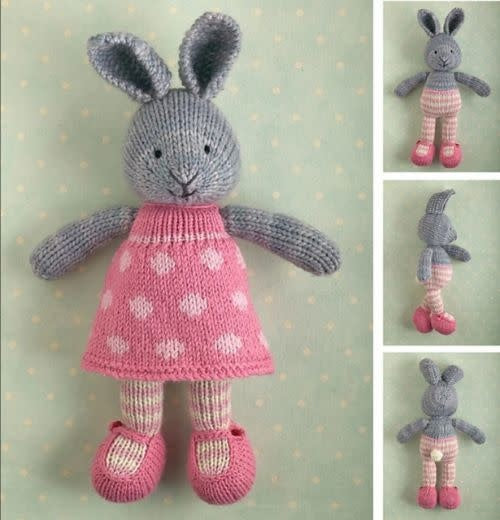 Note: I used the same weight of yarn for everything and only 2.75 mm needles. I also recommend the boy bunny pattern since it includes all of the "faces" while the girl bunny has the single colour face only. The girl clothes can be purchased separately.
