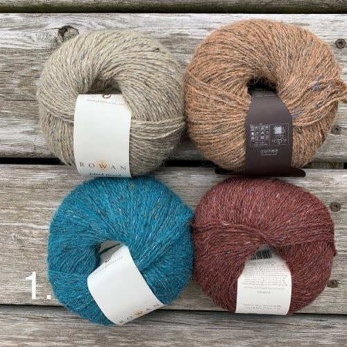 Kits include: Rowan Felted Tweed (quantities below - add 1 more of the MC and CC3 if making size 2), Pattern and needles are NOT included.