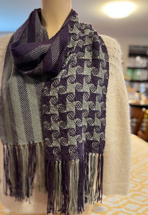 This additional class is intended for those who have put up a loom and woven at least once before. We will be making the Weaving a Dream by Pauline Mulroony of Ashburton, New Zealand. We will be using a pick up stick, 2 shuttles and 2 contrasting colour warp and contrasting light and dark warp and weft yarns.