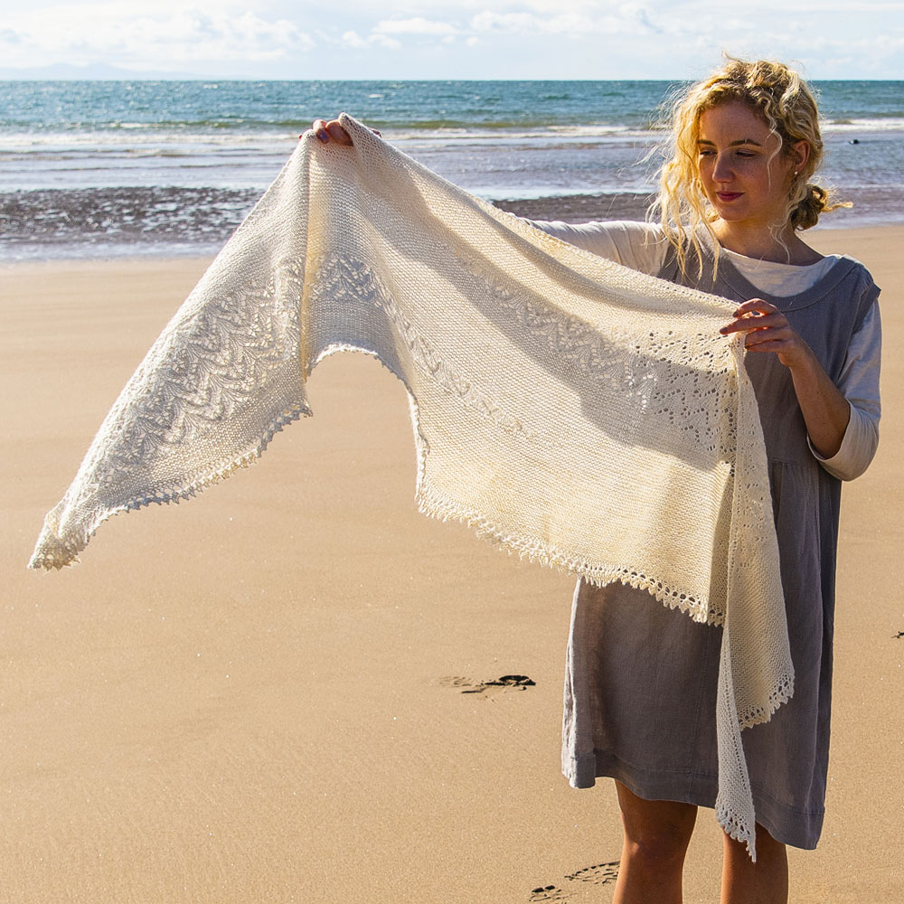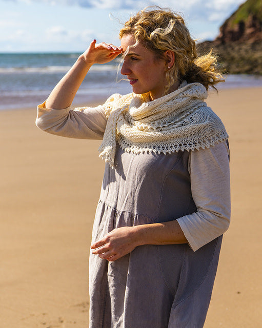 Simple lace panels fade into meditative garter stitch, making our versatile Seacote shawl look different every time you wear it! Suitable for novices in short-row shaping and lace, this romantic shawl is knitted in Meadow and shaped using increases on every row. The pretty edging is knitted on at the end.