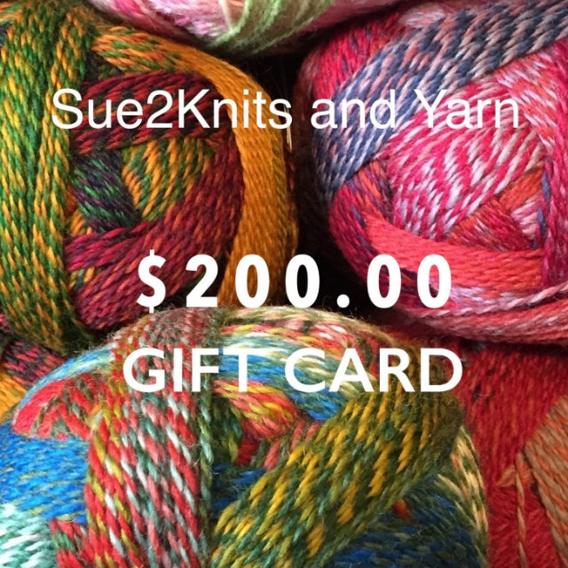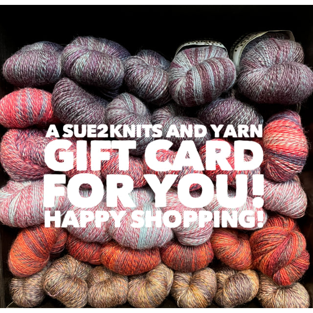 Shopping for someone else but not sure what to give them? Give them the gift of choice with a Sue2Knits and Yarn Gift Card!