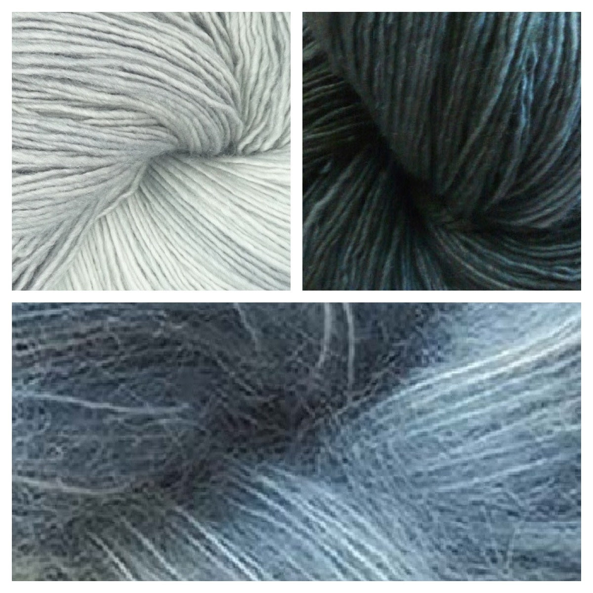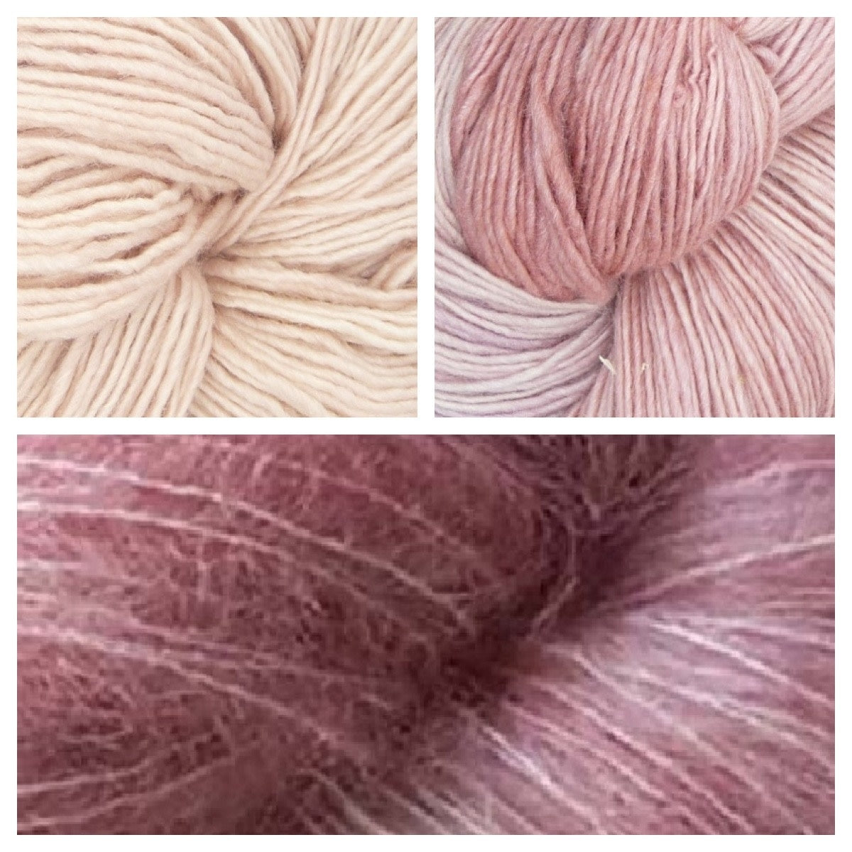Kit includes: 1 hank of Manos Del Uruguay Fino in CC1, 2 hanks of Manos Del Uruguay Fino in CC2 and 3 hanks of Manos Del Uruguay Cabrito. Needles, notions and Pattern are NOT included.